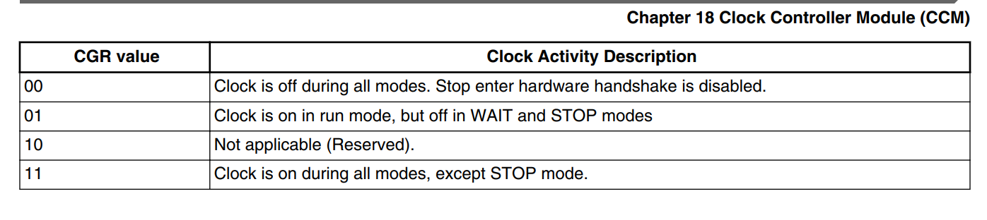 00 关闭外设时钟。01 只在正常运行有时钟。10 保留不用。11 正常使用时钟