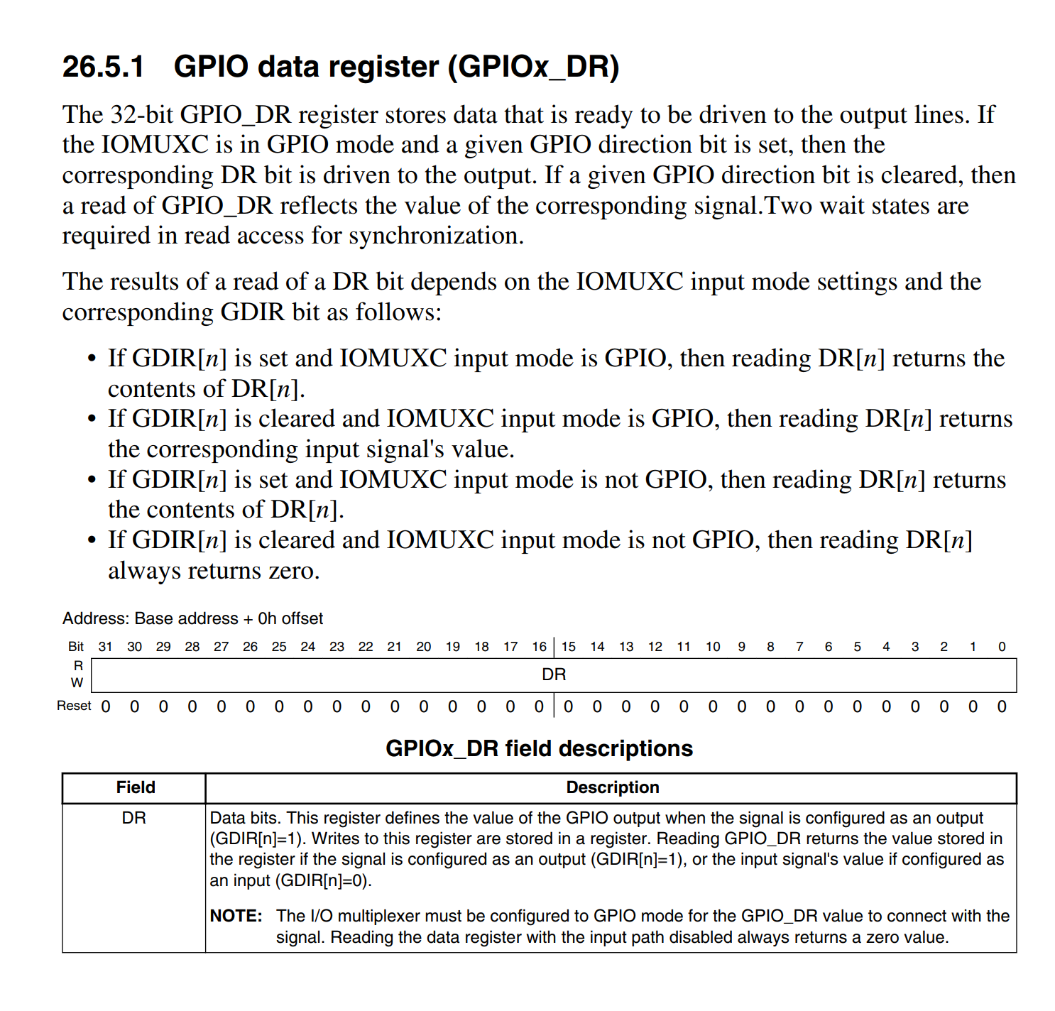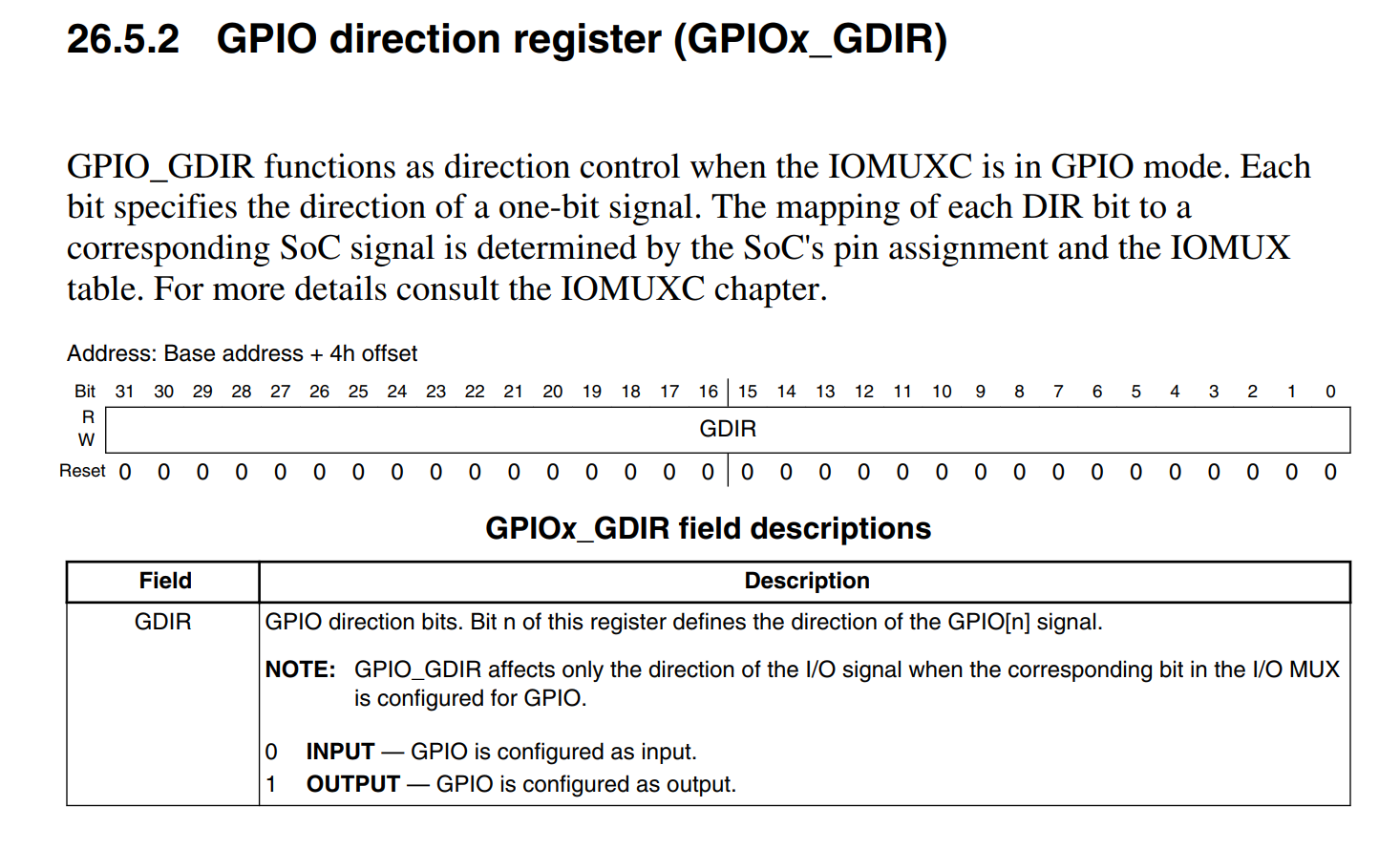 ① 使能时钟(CCM模块),CCM_CCGR0到CCM_CCGR6七个寄存器控制了所有的外设时钟,查询数据手册得知CCGR1的27-26位控制了GPIO1外设的时钟