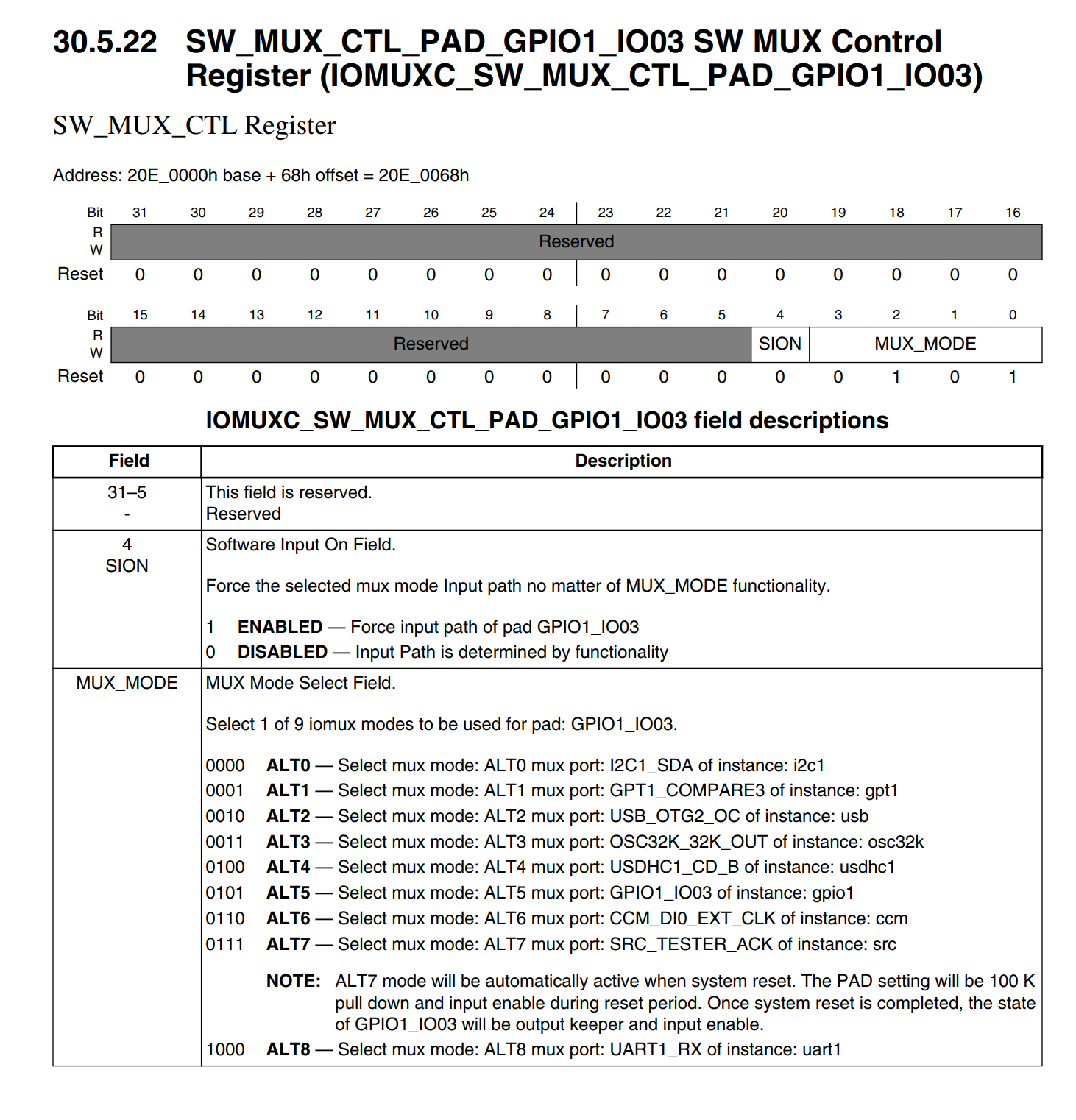 ② IO复用寄存器IOMUXC_SW_MUX_CTL_PAD_GPIO1_IO03